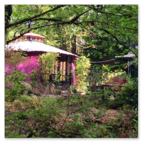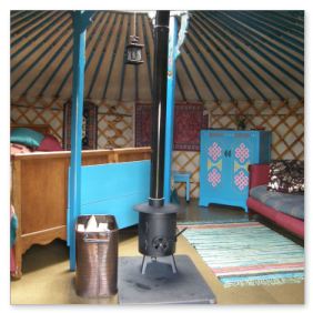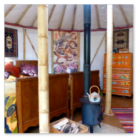 Genuine Mongolian yurts, Vintage American Airstream Caravan, a stunning wooden Cabin, (which is completely wheelchair accessible), and a unique bamboo framed orientally inspired Pagoda Yurt, all privately situated, each with their own bathroom and kitchen facilities, in a picturesque and inspiring setting in a peaceful corner of the Brecon Beacons National Park, near Llandeilo in beautiful West Wales.
