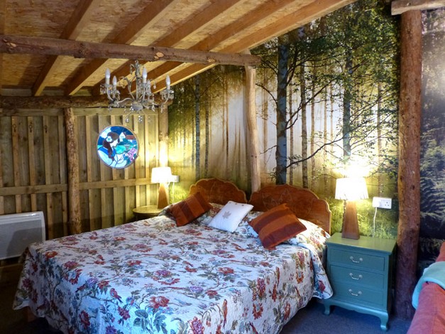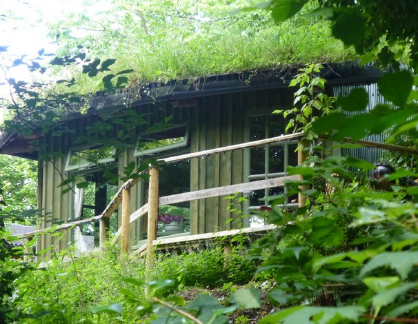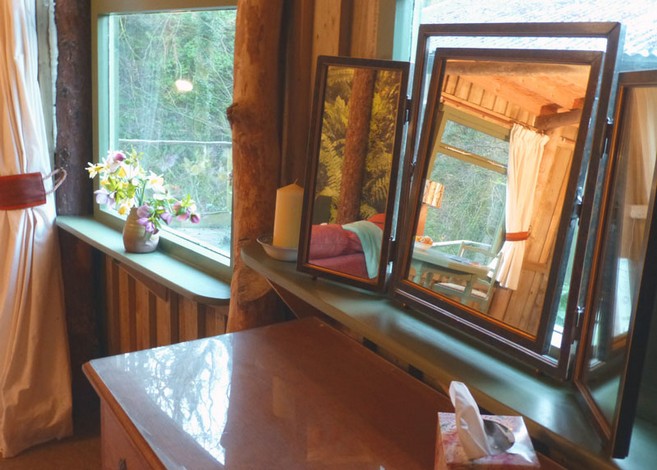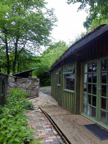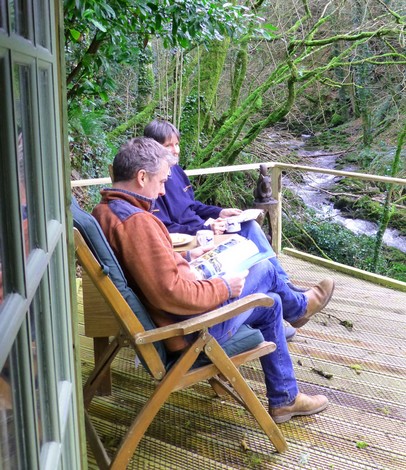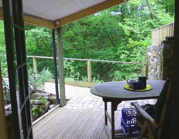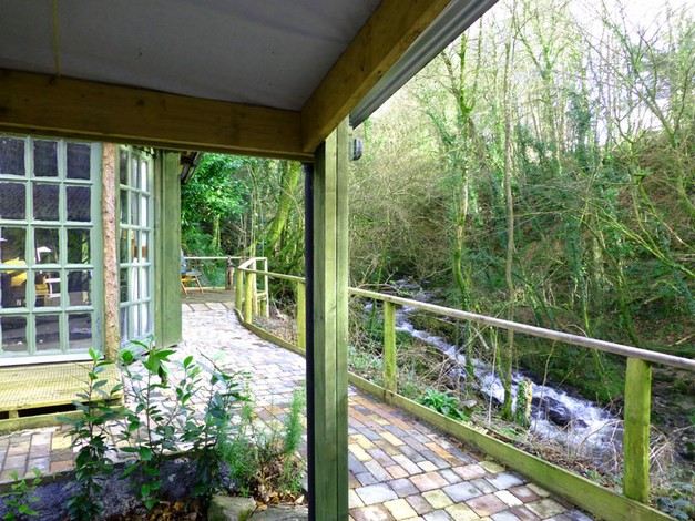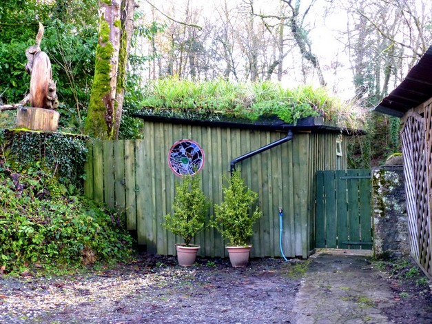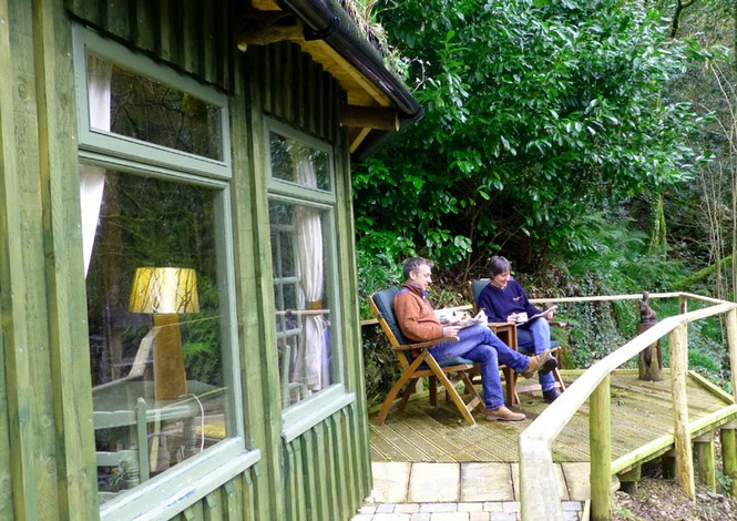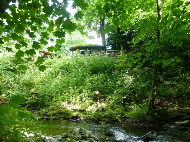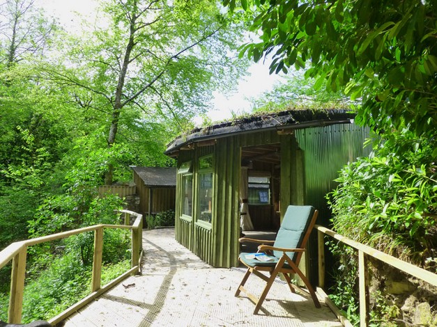 This charming spacious, rustic turf roofed glamping cabin merges into the trees overlooking a little rushing brook in the beautiful Towy Valley just a mile from Llandeilo, West Wales. It is fully equipped for 2 people with it's own private kitchen and walk in shower room (all wheelchair accessible)