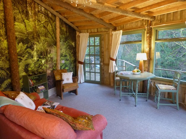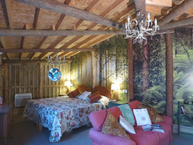 This charming spacious, rustic turf roofed glamping cabin merges into the trees overlooking a little rushing brook in the beautiful Towy Valley just a mile from Llandeilo, West Wales. It is fully equipped for 2 people with it's own private kitchen and walk in shower room (all wheelchair accessible)